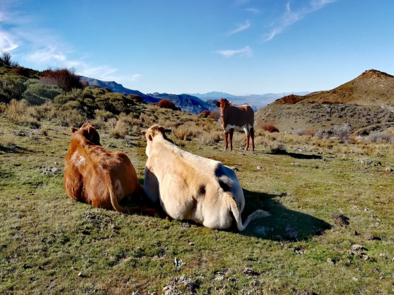 Recorremos las lomas del Alguacil y de las Catifas (2336 mtrs.), por el lado de la cuenca del río Maitena y por la opuesta a la del río Aguas Blancas divisamos el perfil de la Sierra de Arana o los puntos más altos de la Sierra de Baza