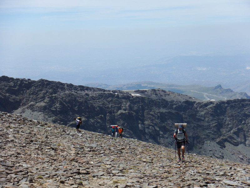 Desde La Hoya de la Mora, pasando por las Posiciones del Veleta, el Corral del Veleta, Los Machos y el refugio de la Carihuela.