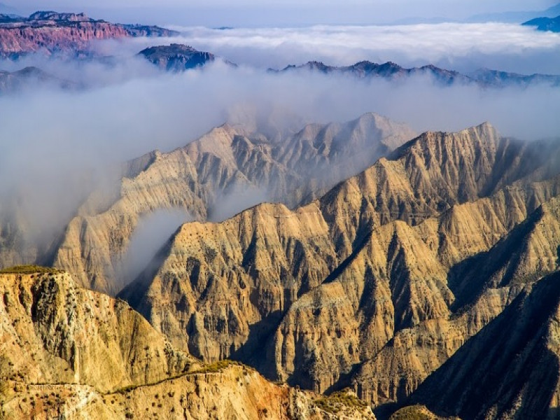 El paisaje se divide en dos grandes zonas, una de Bad Lands (tierra mala) y chimeneas de Hadas que se asemeja a la Capadocia en Turquía.
