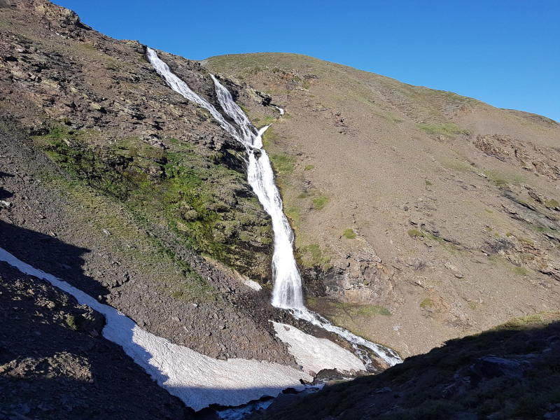 Después seguiremos ascendiendo hasta llegar al lagunillo Misterioso, una de las las lagunas menos conocidas de Sierra Nevada, ya que está escondida bajo la arista de El Cartujo.