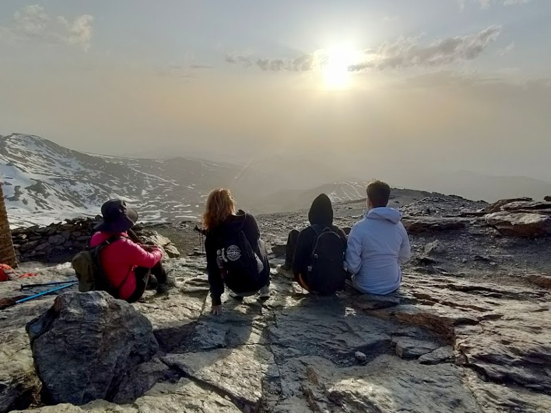 Pues prepárate, porque la subida al Veleta (3398 metros) no solo te pone las piernas a tono: también te regala un atardecer con tonos morados, rojos y anaranjados que hasta el sol se queda un rato más por no perderse la maravilla.